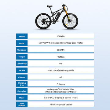 Whether you’re a trail cyclist or a long-distance explorer, the DH420 adapts. Its comfort-focused design accommodates larger riders, and the 5-speed mode balances speed (50km/h top speed) with energy conservation. Perfect for mountain e-bike tours, all-terrain commutes, or high-performance eMTB challenges.