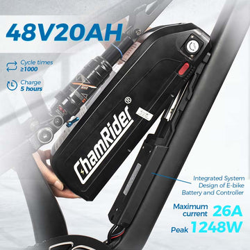 3. Power That Laughs at Rough TerrainFeel the1248W peak powersurge as you accelerate through mud, sand, or steep inclines. The26A max currenttransforms the ChamRider DH420 into ahigh-performance e-MTB, ideal for thrill-seekers who demandrugged terrain e-bikecapabilities.