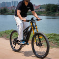 - Endurance-Driven Design:Rugged terrain e-bike features include wide knobby tires, hydraulic disc brakes, and a suspension system tailored for mountain electric bike challenges.