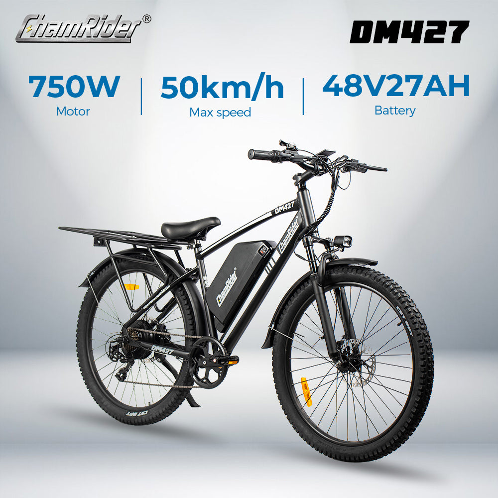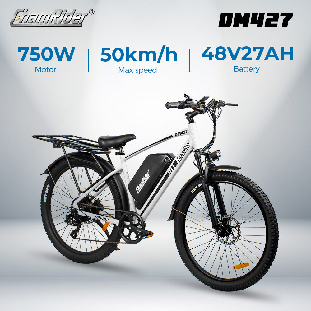 - Stylish Design Meets Versatile FunctionalityRide in style with ChamRider DM427 Ebike! The lightweight stylish E-MTB design pairs with the 19” all-aluminum alloy body (international standard-compliant), ideal for electric commuter bike daily use or parcel delivery e-bike tasks. The 750W high-speed motor ensures efficient rides, making it a versatile electric mountain bicycle for commuting, delivery, and leisure.