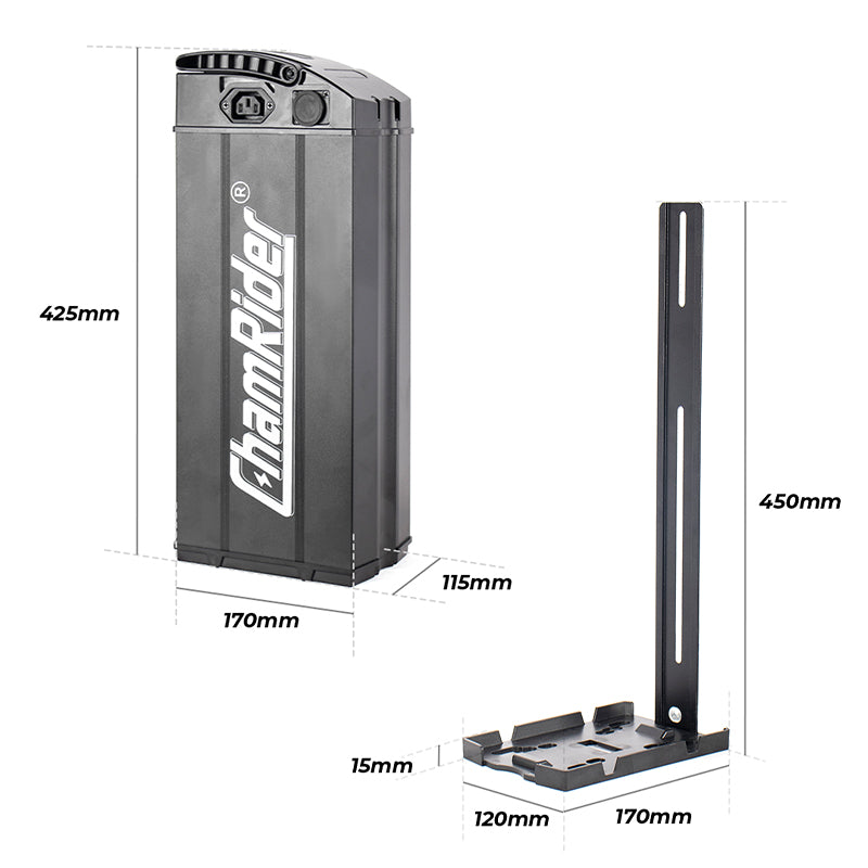 - Specifically designed for DT450/DTS425 e - bikes, the ChamRider Super Fish Battery offers seamless compatibility. The Battery Locking Key and Portable Handle (shown in the image) make installation a breeze. With base dimensions (170mm × 110mm × 10mm) and a mounting height of 450mm, it fits perfectly without extra modifications. Optimize your vehicle’s performance—install and use immediately, ideal for any electric bike for food delivery.