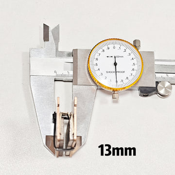 The 13mm height dimension determines the vertical alignment of the friction material relative to the brake rotor. This measurement is critical because improper height can result in the pad contacting the rotor incorrectly—either riding too high and creating a lip at the rotor's edge, or sitting too low and failing to utilize the full rotor surface.